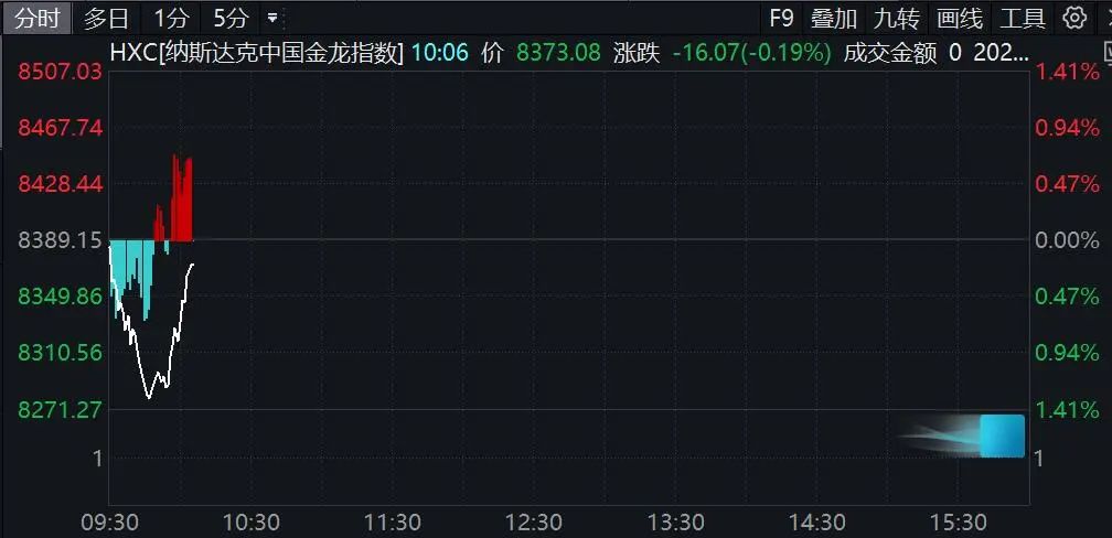 中概股多数走弱,纳斯达克中国金龙指数一度跳水跌逾1%,不过随后拉升收窄跌幅,截至发稿,跌0.19%。